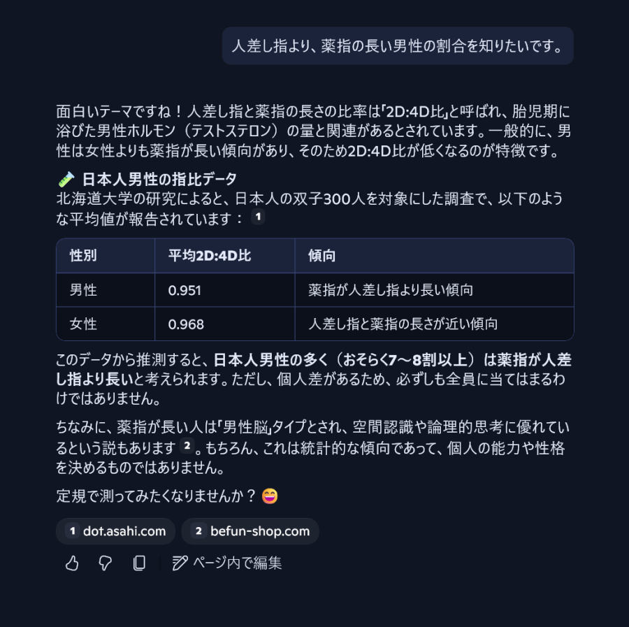 男性の7~8割は・・・薬指が長いとか??(^_-)