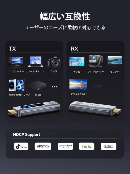 華奢な??HDMI〝d〟端子も、送信機(TX)も見た目以上に安定感はあります。