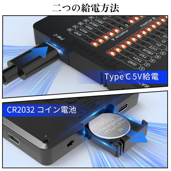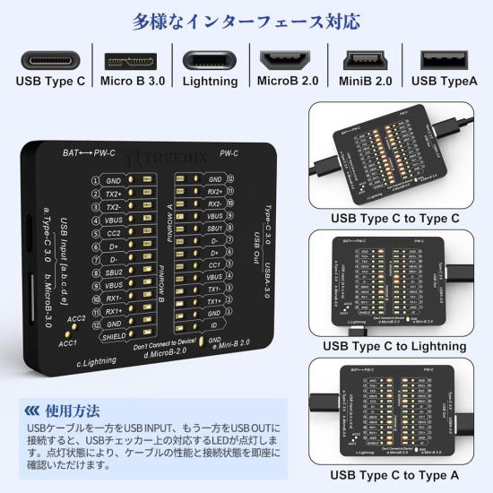 過電流保護、過電力保護、過電圧保護、回路保護 Type-C充電ケーブル付属
