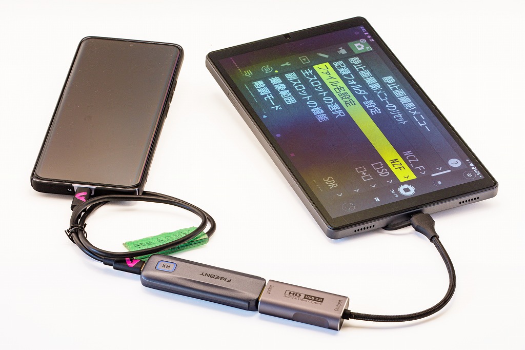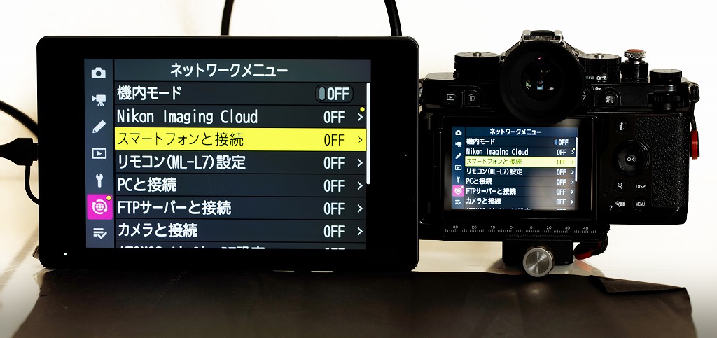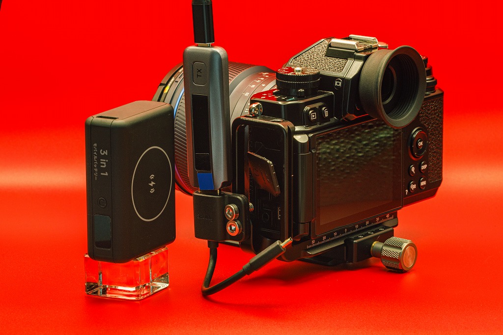 モニターを、カメラに装着してさらに、無線(RX)で外部モニターに飛ばして使ってますね。