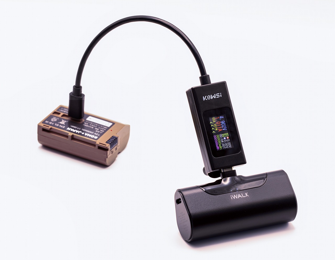 カメラに、装着したまんまだと「iWALK」の、モバイルバッテリー・・・