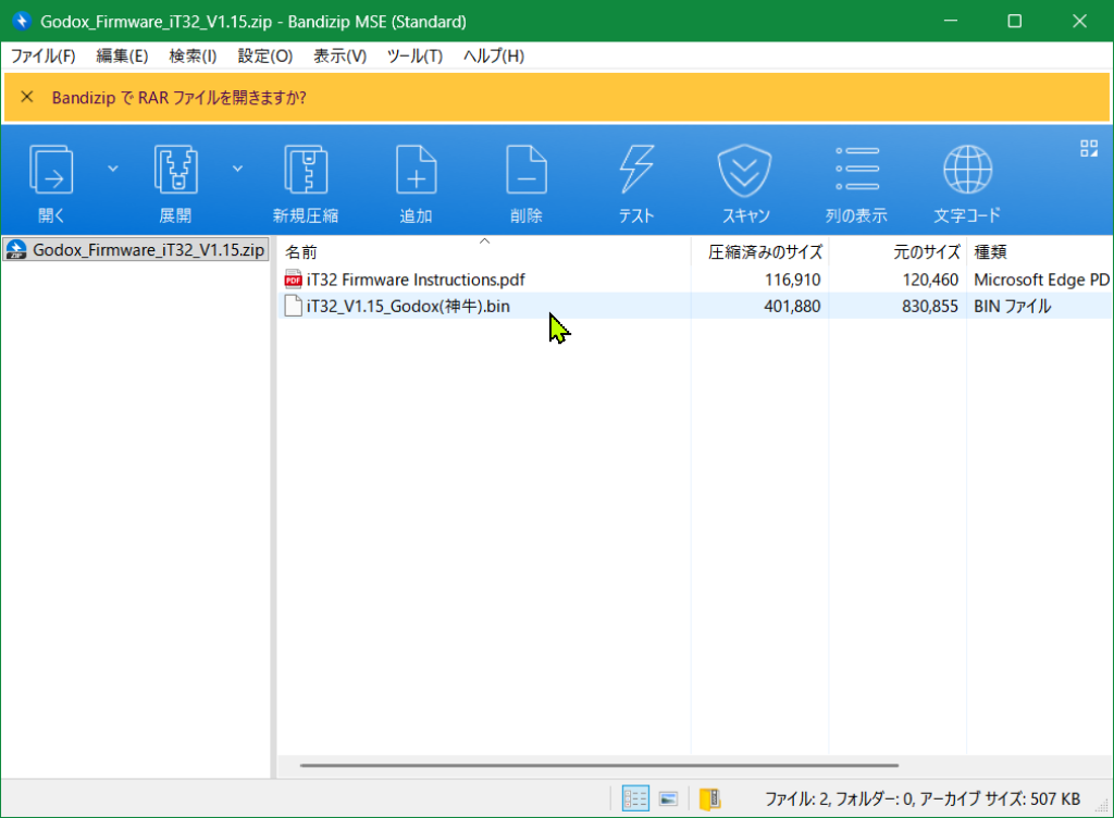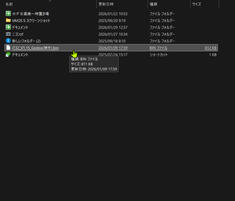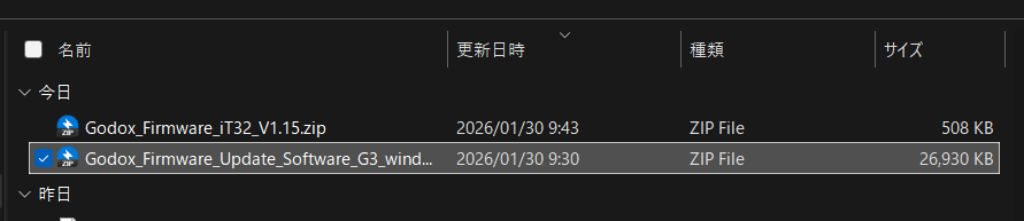 ※ 上の段の「Godox_Firmware_iT32_V1.15.zip」拡張子が「zip」になってますが・・・