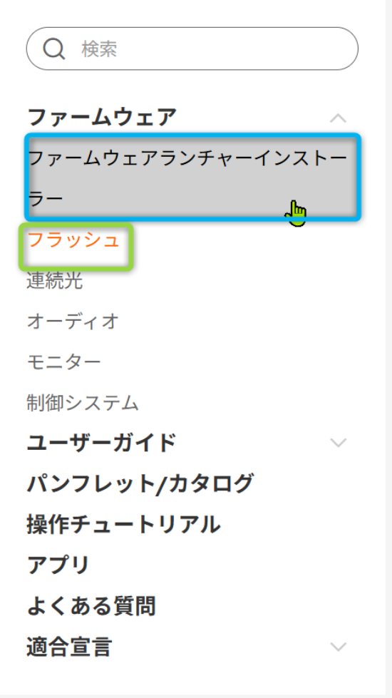 そして、それぞれ該当する「フラッシュ」の、ファームウェアをダウンロードすることになります。