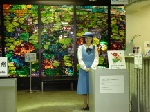後ろのステンドガラスも綺麗ですが、 それに負けないくらい、コンパニオン も綺麗な人でした。(^o^) ちゃんと、HPに載せるからとお断り して撮らせて貰いました。 |