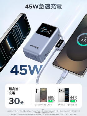 UGREEN 超小型 モバイルバッテリー 「PB727」 10,000mAh PD 45w 入力:最大35w PSE認証済み Xiaomi55w急速充電 サイズ90x50x33mm 重さ: 245.1g(バッテリー:144g) 低電流のデバイス用のトリクル充電モード ボタンを3秒以上長押しで切り替え 2026年2月2日Amazonで スマイルセール |
